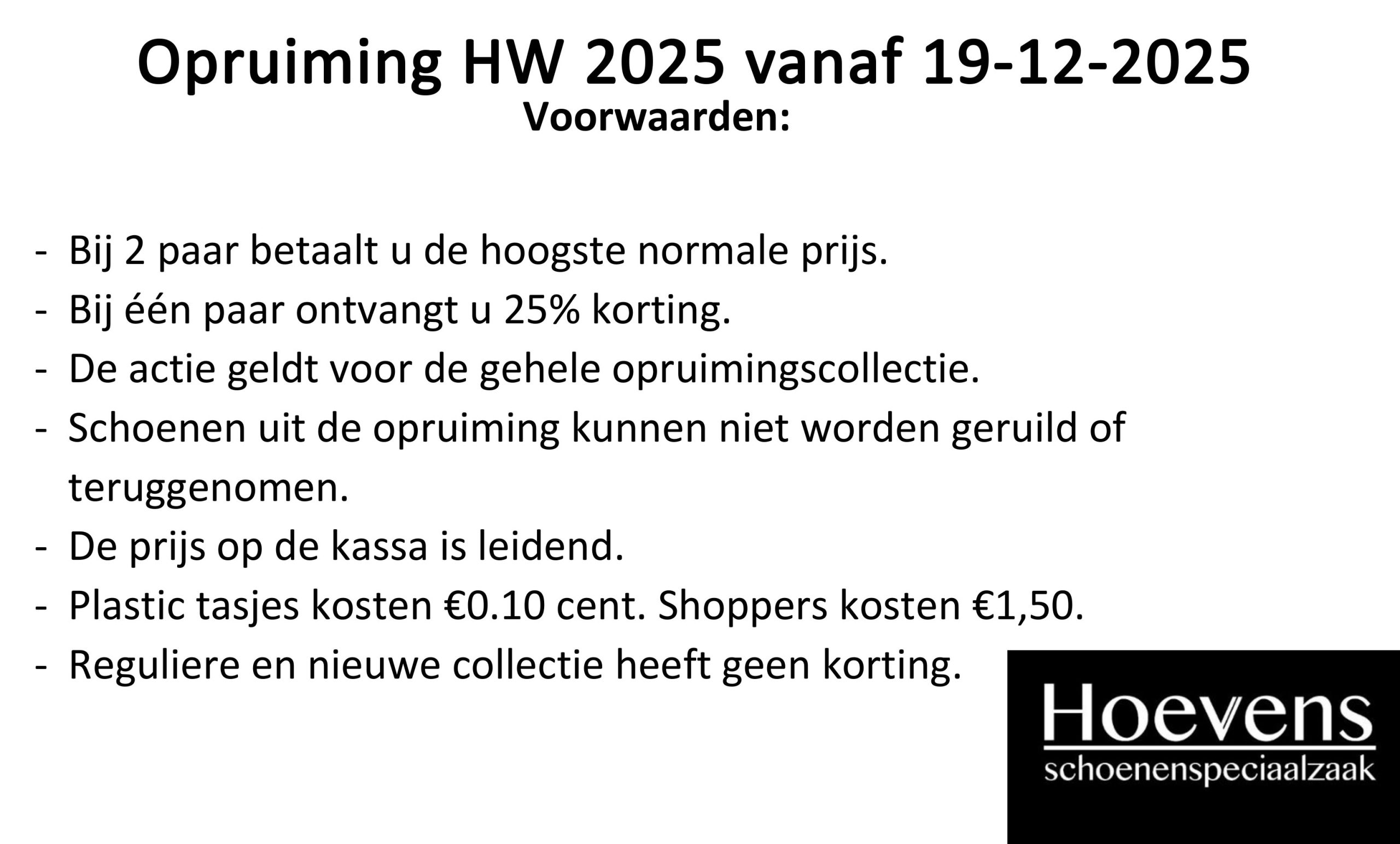 Grote schoenen opruiming bij Hoevens Schoenen: 2 halen 1 betalen De opruiming bij Hoevens Schoenen is weer begonnen en dit jaar is onze sale groter dan ooit. In onze webshop en winkels vindt u een uitgebreide schoenen opruiming voor dames en heren, met volop keuze in alle maten en wijdtematen.